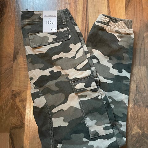 Bukser str 158, 1 stk jeans, 1 grønn joggebukse, 1 sort cargobukse