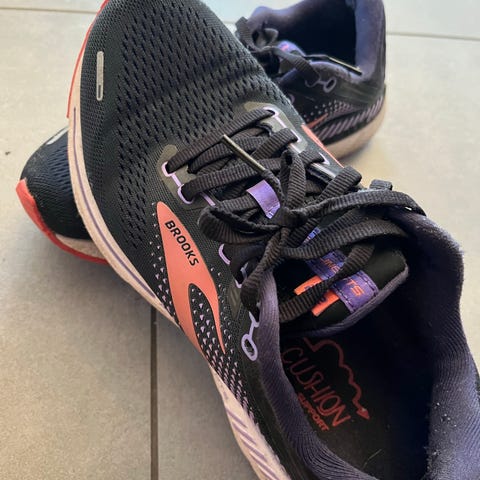 Brooks løpesko i størrelse 38,5 med blå/turkis og hvit farge. Mest brukt til innendørsbruk.