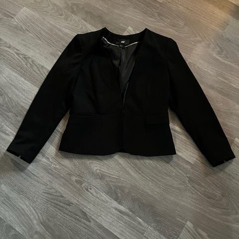 Tre svarte blazere. To fra H&M i størrelse 42 og en fra Part Two i størrelse 44.