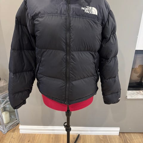 The North Face Annet yttertøy i størrelse S for kvinner. Jakken er svart og designet for utendørs bruk. Materialet og konstruksjonen gir isolasjon og beskyttelse mot kulde. Brukt bare et par ganger, fremstår som ny.