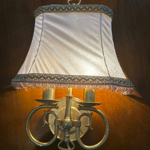 2 pene vegglamper i messing fra Borens. Nye/ubrukte skjermer følger med!