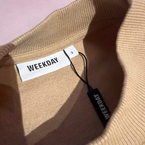 Weekday Genser i beige farge, størrelse S for kvinner. Laget i et mykt og behagelig materiale med rund hals og lange ermer. Passer til hverdagsbruk og kan kombineres med ulike antrekk.