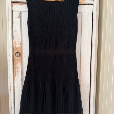 Gina Tricot festkjole i svart farge, størrelse XS. Kjolen har korte ermer, plissért skjørt og et elegant design med glidelås bak.