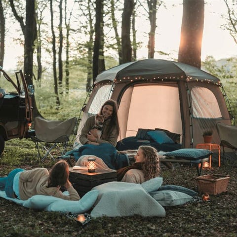 En pakke inneholder: 1 Telt, 2 liggeunderlag 2 soveposer og 2 stoler