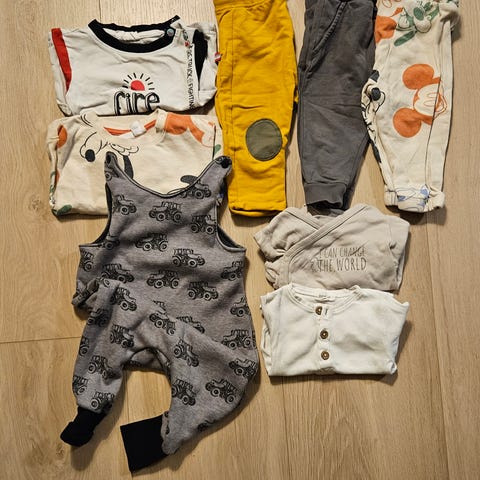 barneklær for gutt i størrelse 80 . Inneholder 1 sett med hettegenser og bukse,