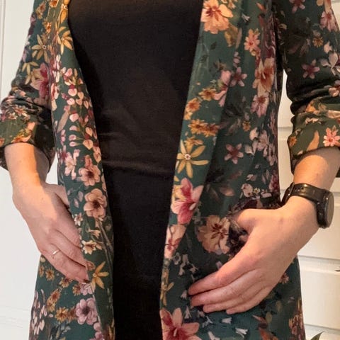Jakka har blitt lagt opp 5 cm med pen håndsøm, lett å ta vekk om ønsker lengre jakke