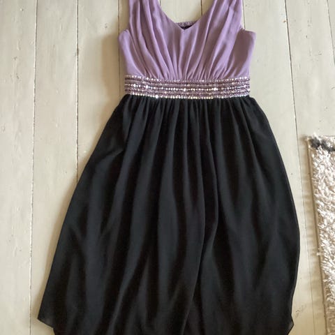 Utrolig fin kjole som er for trang for meg. Lappen inni er klippet bort da den klødde. Kjolen har underkjole, og er elastisk oventil.