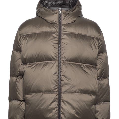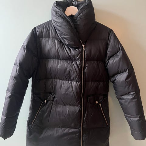 Filippa K dunjakke i størrelse S for damer. Jakken er grå. Skjult hette i krave