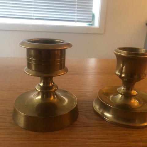 To miniatyr lysestaker i messing
