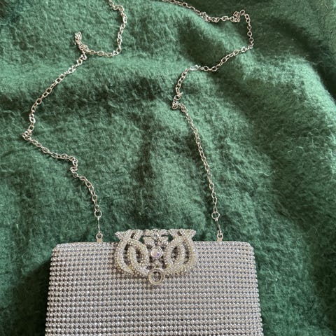 ✨ Sølv clutch med strass og sateng – perfekt til bryllup eller fest