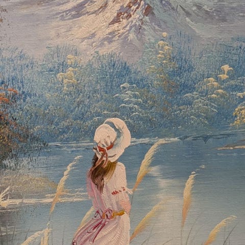Googelsøk ga en indikasjon på kunstner, men vet jo ikke om det er riktig. Ligger bildet av det jeg fant.