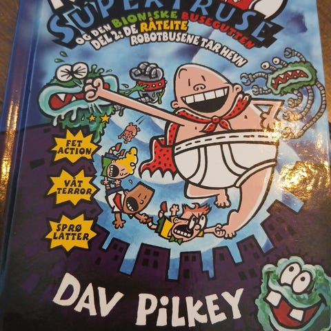 Dav Pilkey bøker om Kaptein Supetruse er veldig populære blant barn med humoristisk innhold.