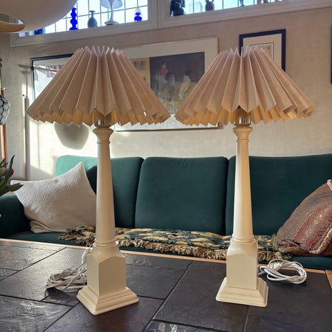 Gammel koselig bordlampe med malte blomster på.