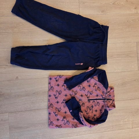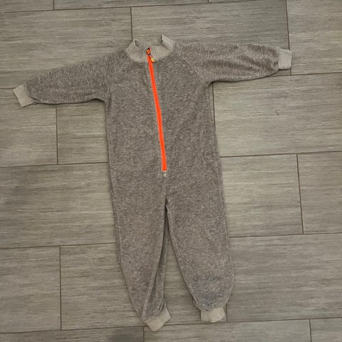 Pent brukt onepice i fleece , litt usikker på strl da det ikke står inni men mener den passer nok best barn 116-122.