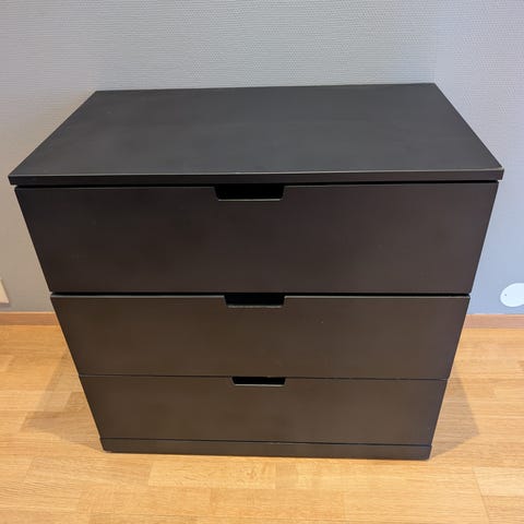 I fargen brunsvart med 4 skuffer.