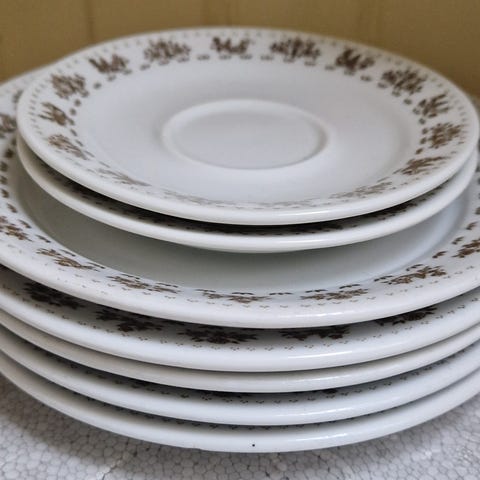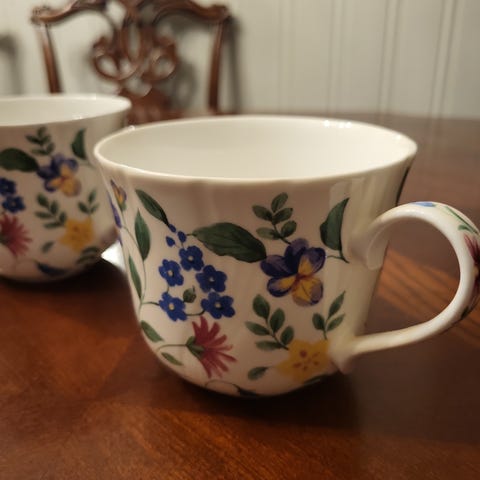 Elegant mugge i hvitt og gull med Porsgrund sitt stempel for sanitærporselen . Kan dermed tidfestes til 1948- 52