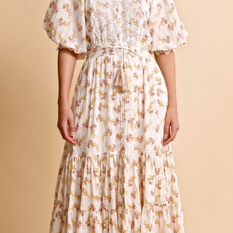 Selger min Emilie bluse. Helt utsolgt på nett. Hvit med rosa, brun, grå mønster. Behagelig indisk bomull. Nypris 1499kr.
