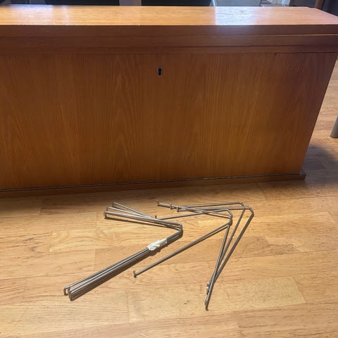 Merk at det mangler ett veggfeste for å være en fullverdig hylle. Den må derfor monteres på en eksisterende Poul Cadovius hylle, ev må man oppdrive et ekstra veggfeste selv.