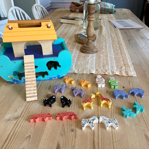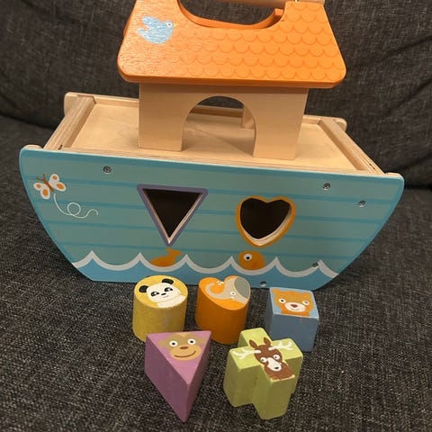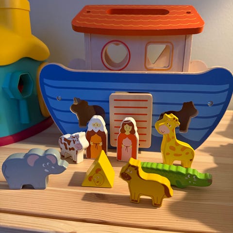 Båt i tre med dyr og folk