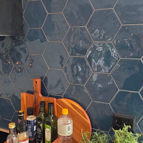 Tre stk grå fliser i porselen fra Floor Gres selges. De måler ca. 29,3 x 59,8 cm.