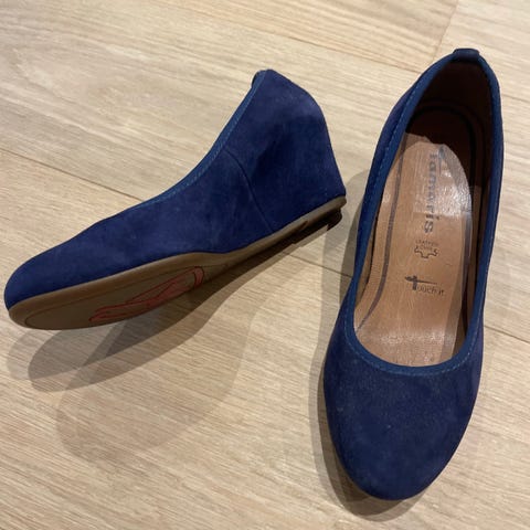 Pene Tanaris sko med 8 cm hæl. Brukt en gang. Innsiden på skoene har fått noe bruksmerker, men ellers fremstår de som nye. Skoene er laget av skinn.
