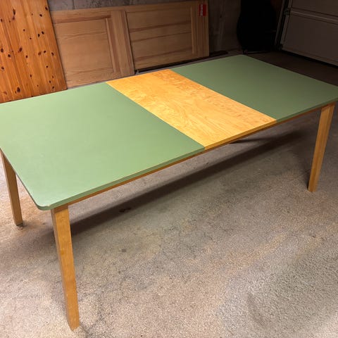 Bunnsolid bord som foruten spisebord og skrivebord kan brukes som arbeidsbenk, stillas å gå på mm