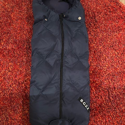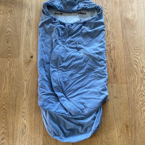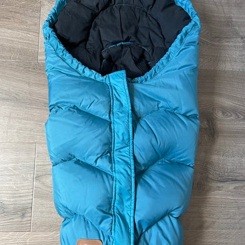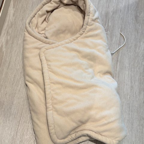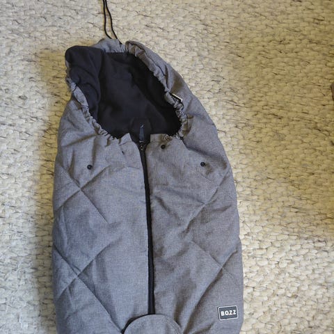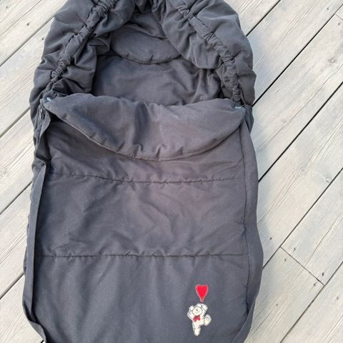 Har hull på baksiden så den kan festes både i barnevogn og bilsetet.