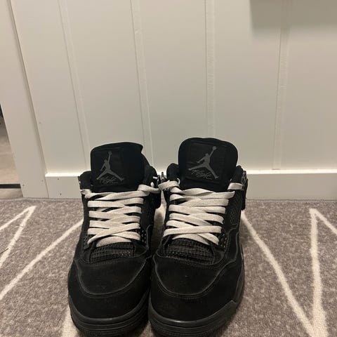 Jordan 4 black cats passer fra strls 43-44. Brukt dem litt, men er i god stand, derfor selges den billig.
