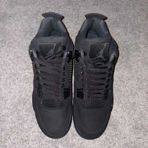 Jordan 4 black cats passer fra strls 43-44. Brukt dem litt, men er i god stand, derfor selges den billig.