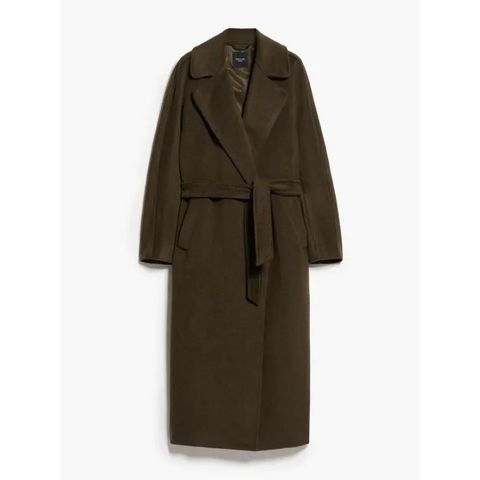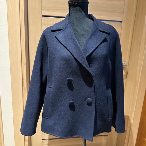 Max Mara Studio Wool Robe Coat. 100% virgin wool I navy farge. Modellen er litt kortere enn på bildet. Rekker meg til knærne som er 160cm. Størrelse italiensk 38 og passer fint str 34-38 avhengig av hvor stor/tett man ønsker.