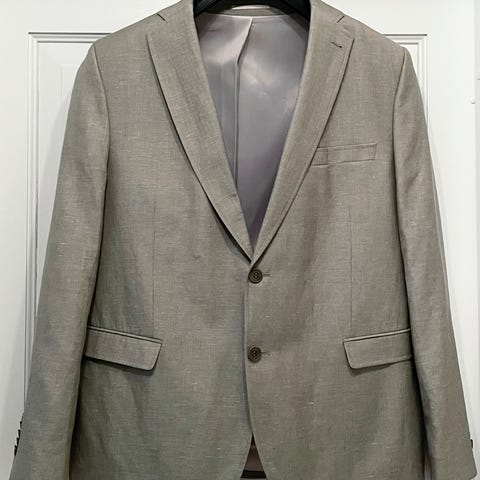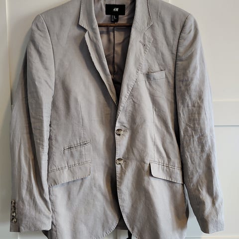 En enkeltspent jakke i luftig linkvalitet (68% lin, 32% bomull). Brystlomme, lomme foran med klaff og to innvendige lommer. Fôret.