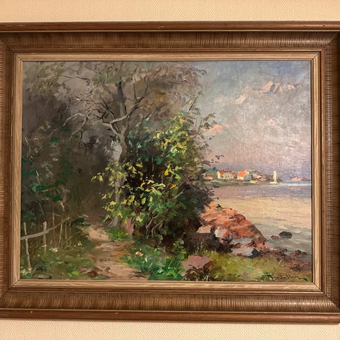 Rammet (må males på nytt) og klar til oppheng.