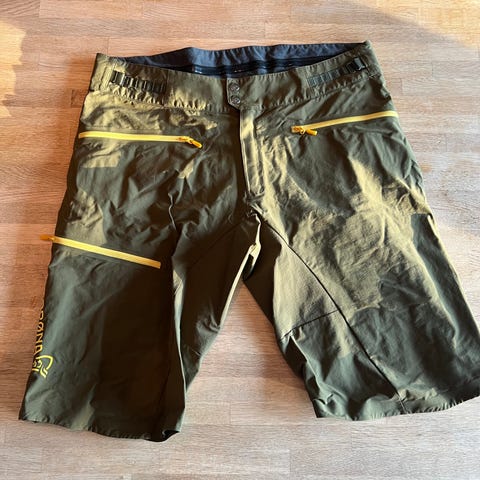 Norrøna fjørå flex1 herre shorts, størrelse medium selges. Ubrukt. Farge Caviar/ Castor grey (Grå-sort/ salviegrønn). Lufteventiler foran på lår. Lommer m glidelås foran i livet. Sidelomme venstre lår for mobil o.l. Justeringer liv-vidde med borrelås. Formsydde knær. Fjørå serien fra Norrøna er designet til terrengsykling, men funker som ei kule også til fotturer, og aktiv fritidsbruk. Selges da den av uforklarlige grunner er blitt litt knapp i livet;) Lett, behagelig, tørker raskt, og er ideell og smidig for aktiv bruk. Vaskbar på 40 grader. Ny pris 1799,-