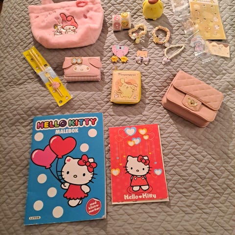 MY MELODY GENSER: Søt kawaii hettegenser med ører og trykk av My Melody både foran og bak. Str ikke oppgitt, jeg anslår L. Skal være litt baggy. Godt brukt. Se bilder for nærmere info.