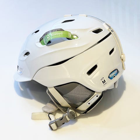 Smith Ski- og Snowboardhjelm i hvit farge. Hjelmen har ventilasjonshull og justerbar stropp under haken for sikker passform. Egnet for vintersport som ski og snowboard.