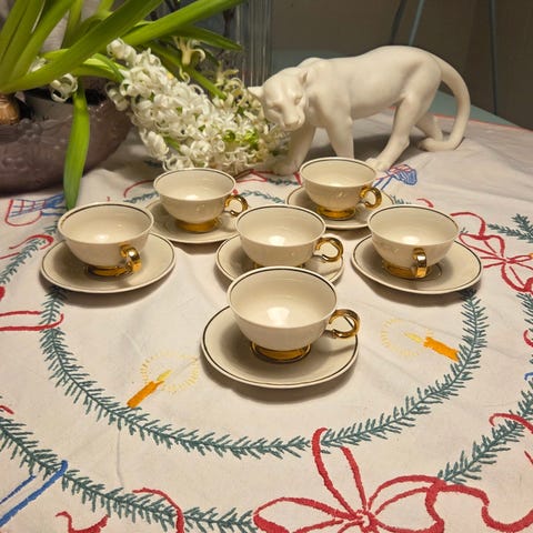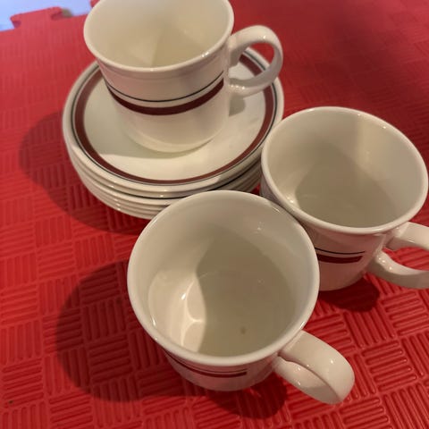 Tre kopper og ett fat i merket Arabia Finland Svea Granlund og Olga Osol.