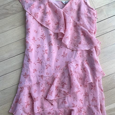Cubus sommerkjole i størrelse 146 for jenter. Kjolen er rosa med blomsterprint og har smale stropper. Materialet består av 100 % polyester.