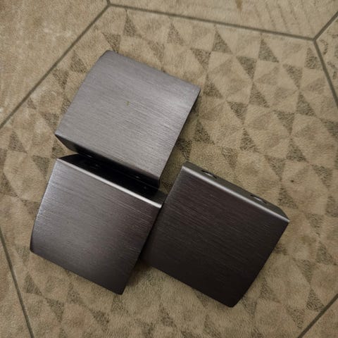 23 stk Håndtak Edge lengde/bredde 40 mm i børstet messing, til skap/skuffer på kjøkken ol. Brukt bare i 2 måneder. Skrues fra baksiden og underkant på overskap og overkant på underskap. Selges for halv pris.