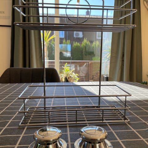 Mål: bredde 120 cm, dybde 40 cm og høyde 48 cm.