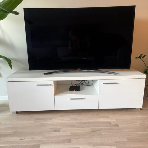 Pent brukt TV bord, hvit med overflate i tre.