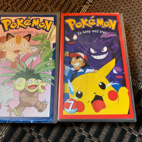 Samling av 12 Pokémon VHS-kassetter med ulike episoder og karakterer. Kassettene viser forskjellige Pokémon-eventyr og inkluderer kjente figurer som Ash, Pikachu, Misty og flere. Egnet for samlere og fans av Pokémon-serien.