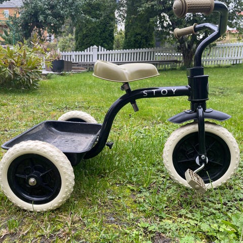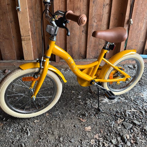 Gammelrosa 16" vintagesykkel fra Stoy. Sykkelen har en robust stålramme. Liten ulyd når man triller, men sikkert lett å fikse.