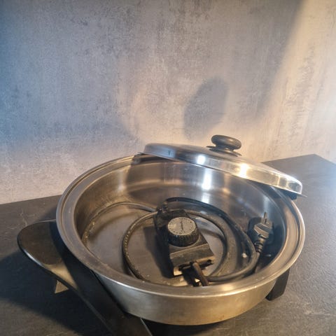 Tilbered mat på en sunnere måte som innvolverer vannfri og fettfri matlaging , og bevarer de naturlige næringsstoffene i maten. Et elektrisk varmeelement som varmer opp en oljekjerne under pannen .