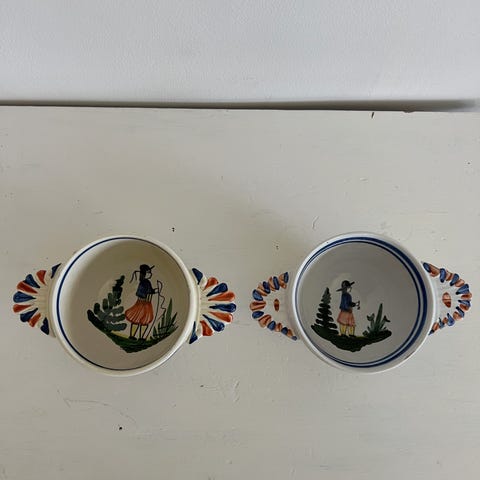 3 skåler. Ingen skår eller nagg. Kan sendes.. Selges samlet. https://quimperfrenchpottery.com/ Smørboksen på bildet er solgt.