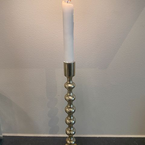 Rolf lysestake i grå farge. Kjøpt på Illums bolighus i Oslo. Merk nokre hakk i malingen. Sjå bilde. 38 cm høg.