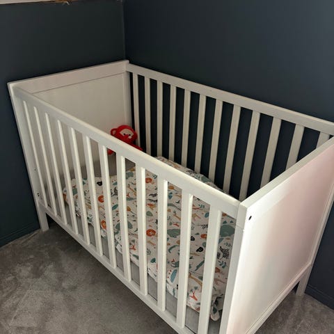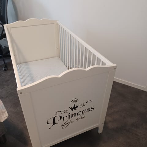 En pent brukt sprinkelseng fra IKEA er klar for ny eier 👶🏼 Den er brukt av to barn. Den ene langsiden kan tas av, slik at det blir en åpen seng. Bunnen har to høyder.