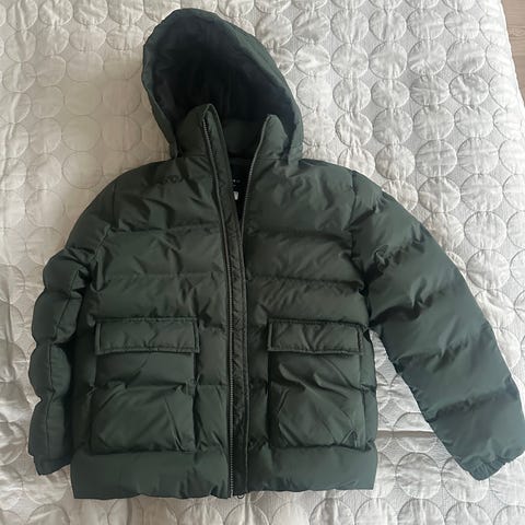 Vattert vinterjakke i mørk grønn farge. Jakken er fra H&M.