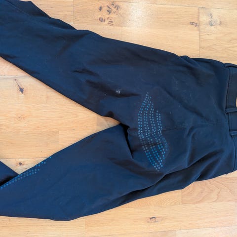 CRW Ride bukse i blå softshell. Laget av slitesterkt materiale med glidelåslommer og elastisk midje for komfort. Passer til ridning og utendørsaktiviteter.