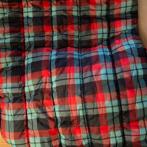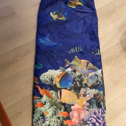 Finner ingen hull eller bruksmerker utover vanlig bruk. Glidelås kan åpnes slik at soveposen blir et teppe.