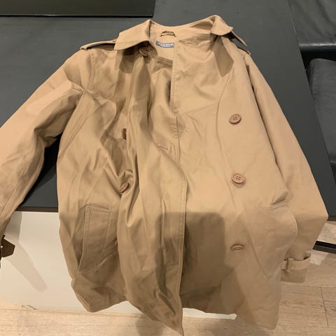 Tøff frakk i grønn-/dempet armyfarge fra svenske Human Scales. Veldig fine detaljer. Merket str 46. Passer damestørrelse 38. Og herrestørrelse omkring small.
